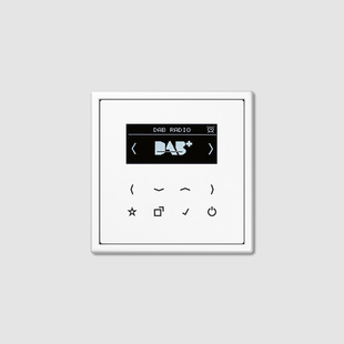 Einbauradio im Schalterdesign: Das JUNG Smart Radio DAB+ ist optisch und technisch ein Highlight. Es wird, wie ein Lichtschalter, ganz einfach in der Wand installiert – platzsparend und ohne lästiges Kabelgewirr im Raum. Das Smart Radio empfängt Programme über DAB+ sowie via UKW-Frequenz und speichert bis zu acht Sender pro Empfangsmodus. In der Variante mit Bluetooth lässt es sich außerdem mit Smartphone und Tablet koppeln. So streamen Sie die eigene Playlist oder Hörbücher, ohne erst nach dem passenden Sender suchen zu müssen. Bedient wird das Radio über ein elegantes Touchdisplay mit Glasfront. Erhältlich in den vielfältigen Rahmen im JUNG Design lässt es sich optimal an die übrige Elektroinstallation anpassen.